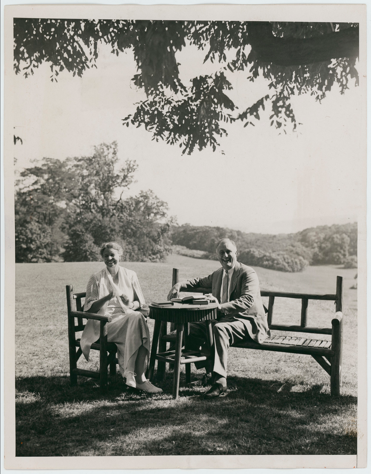 Franklin and Eleanor Roosevelt on the south lawn at Hyde Park, NY. August 16, 1933 (Credit: FDR Presidential Library; photo NPx 62-53)